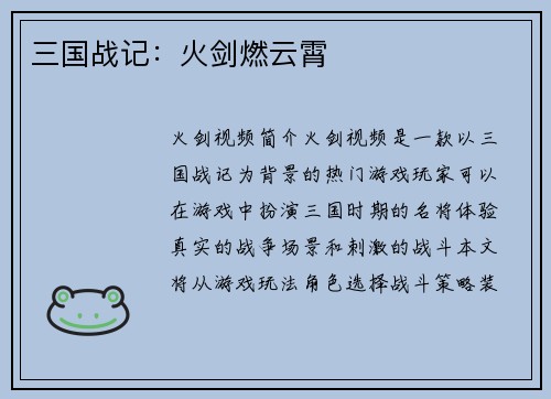 三国战记存档如何读取 引言: 三国战记是一款备受欢迎的策略游戏,玩家在游戏中扮演三国时期的将领,通过战斗和外交手段来统一中国。在游戏中,存档是非常重要的功能,它可以让玩家在游戏中的进度丢失后重新开始,...